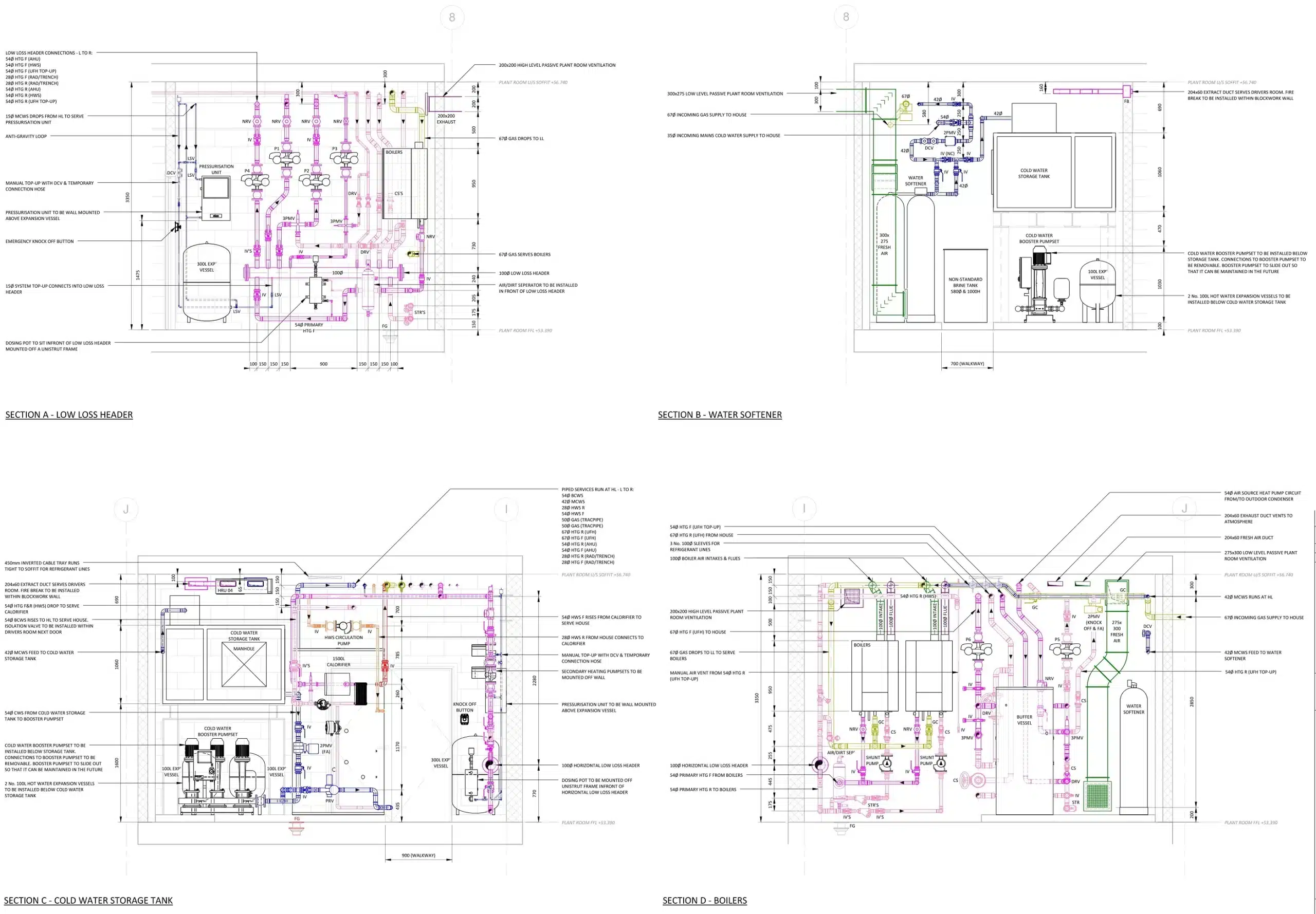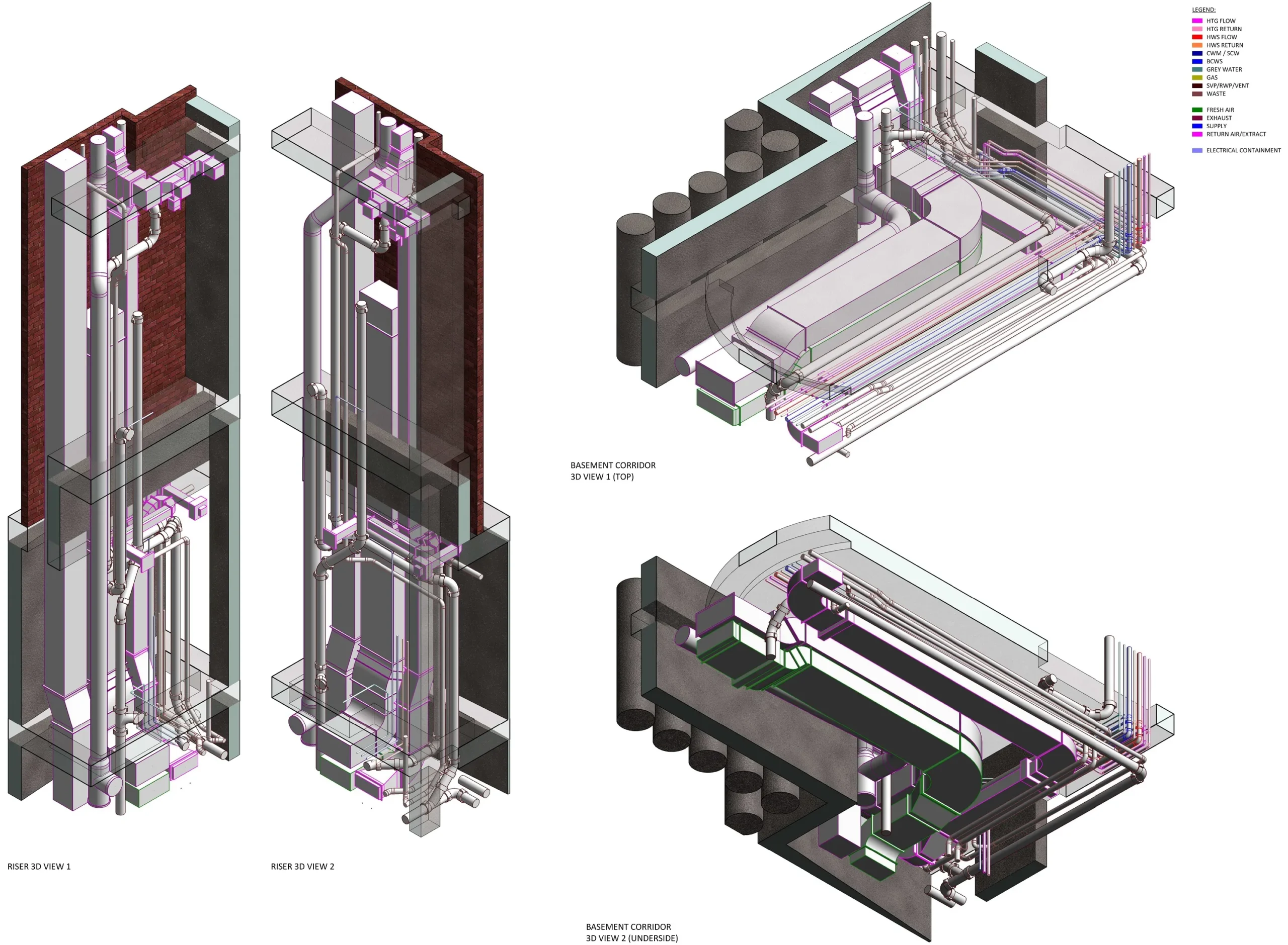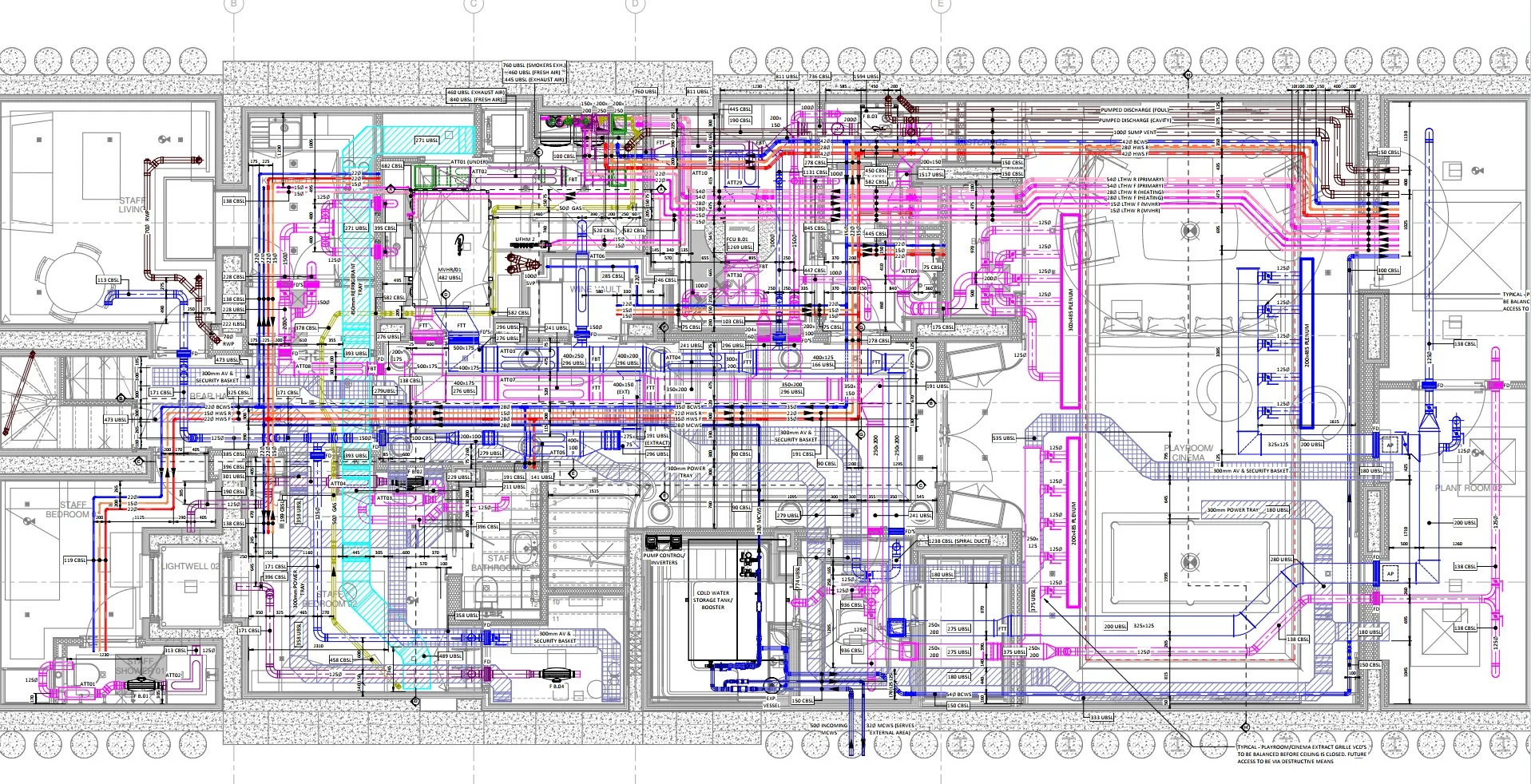 Our extensive experience spans a diverse range of project types, from high-end residential developments and commercial buildings to complex refurbishment projects within listed and heritage properties. We have successfully designed and coordinated Plant Rooms, Risers, Corridors, Service Trenches, and Floor Plan layouts, ensuring efficient space utilisation and adherence to stringent regulatory requirements. Whether working on new builds or existing structures, we are committed to delivering solutions that align with architectural and structural constraints while maintaining functionality and aesthetics.